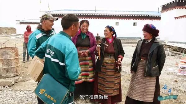 藏族阿媽排著隊等待領(lǐng)包裹,壯實(shí)的漢子來取網(wǎng)購的棉服,村委會主任迫不及待地翻看新到的報紙……