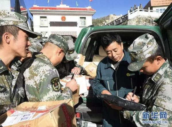 亞林為駐守在乃堆拉哨所的戰士們分發郵包。