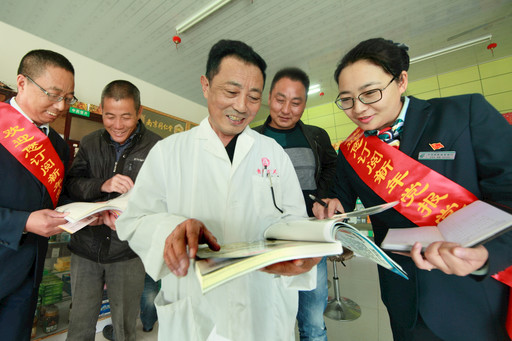 近日,江蘇省金湖縣郵政分公司黨委抽調20多位黨員骨干,組建了12支黨報黨刊發行工作突擊隊,以擴大郵政服務的廣度與深度,著力加強2019年度黨報黨刊訂閱工作,進一步發揮郵政企業黨報黨刊宣傳的陣地作用。圖為黨員突擊隊隊員到客戶身邊對黨報黨刊征訂工作進行宣傳。  □吉爾云  攝影報道