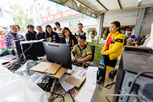 11月1日,絡繹不絕的客戶讓四川省雅安市石棉縣迎政鄉的“郵樂購”站點顯得熱鬧非凡。