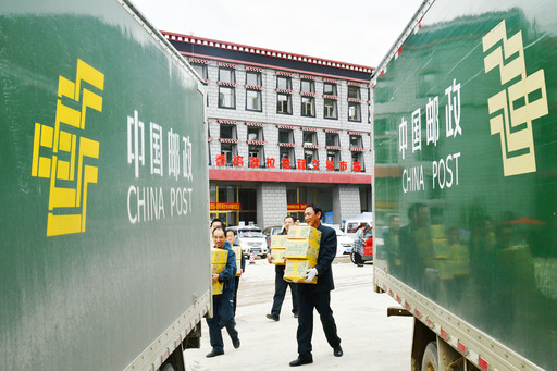 在香格里拉松茸交易市場,郵政工作人員將松茸郵件裝車。一件件、一車車松茸通過郵政渠道走出雪域藏鄉(xiāng)。
