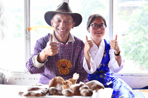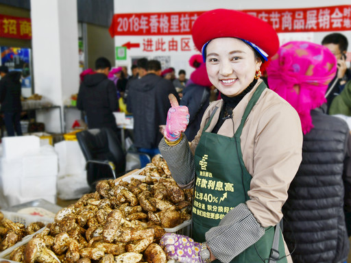 在香格里拉松茸交易市場,郵政客戶卓瑪豎起大拇指說道:“郵政,雅布嘟(非常好)!”