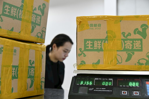 郵政工作人員使用PDA掃錄松茸郵件信息。