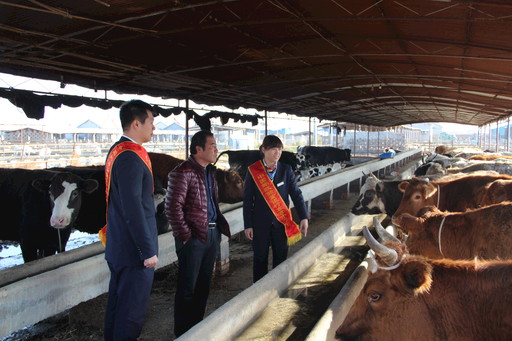 利津縣支行黨員來到鹽窩鎮鹽中村養牛場調查。