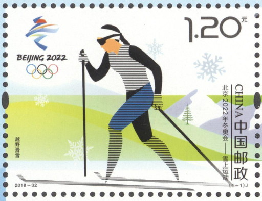 此次發(fā)行的《北京2022年冬奧會(huì)——雪上運(yùn)動(dòng)》紀(jì)念郵票一套4枚,為我國首套雪上運(yùn)動(dòng)郵票,分別表現(xiàn)了越野滑雪、高山滑雪、冬季兩項(xiàng)和自由式滑雪4個(gè)雪上運(yùn)動(dòng)項(xiàng)目。畫面中,滑雪運(yùn)動(dòng)員分別以水平線、同心圓、網(wǎng)點(diǎn)和放射線來表現(xiàn),體現(xiàn)出雪上運(yùn)動(dòng)項(xiàng)目的速度感、力量感和造型美感,富有透視感和精致簡練的幾何形結(jié)構(gòu),描繪出雪上運(yùn)動(dòng)的特征與張力。郵票背景用流線型的波浪線和漸變的色帶把雪山、雪松和雪花等冬奧會(huì)的環(huán)境元素串聯(lián)起來,在動(dòng)態(tài)變化中體現(xiàn)出秩序美。在印制工藝上,特殊材料印制的雪花晶瑩剔透,郵票版張邊飾上的“BEIJING2022”字樣則采用鏤空工藝制作而成,集藝術(shù)和防偽功能于一體。郵票發(fā)行的同時(shí),中國郵政還推出首日封、紀(jì)念封、郵折、郵冊等系列郵品在各郵政網(wǎng)點(diǎn)銷售,部分商品還可在北京冬奧會(huì)特許商品官方網(wǎng)店(http://beijing2022.tmall.com)上訂購。
