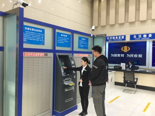 四平市鐵西郵政支局是全市客流量最大的網點,走進廳堂,最吸引眼球的便是廳堂內設置的5臺自助報稅設備,四平市郵政分公司引進了智能自助設備,開啟了“智慧稅務”的新篇章。“剛開始我們粘貼了‘傻瓜式’操作流程引導圖,但自助機的利用率依然不高,我就成了納稅人的自助顧問,所有廳堂的業務,我都能解決。”鐵西支局大堂經理張爽說。納稅人通過自助設備從申請代開發票到一張發票拿到手僅需要短短的兩分鐘時間,與人工辦理發票代開相比,效率提高數倍。