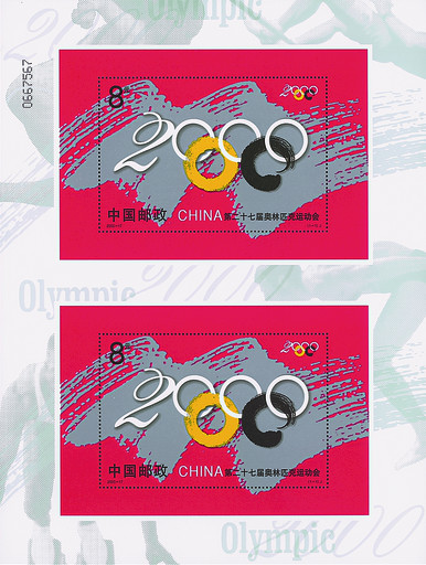 第27屆奧林匹克運(yùn)動(dòng)會(huì)于2000年9月15日~10月1日在澳大利亞悉尼舉行。中國(guó)共奪得28枚金牌,名列參賽國(guó)第三名,成為中國(guó)邁向世界體育強(qiáng)國(guó)征程中的一座里程碑。當(dāng)年9月15日中國(guó)郵政發(fā)行《第二十七屆奧林匹克運(yùn)動(dòng)會(huì)》紀(jì)念郵票小型張1枚,圖案為藝術(shù)化的奧運(yùn)旗幟,五環(huán)與“2000”巧妙組合,同時(shí)還首次發(fā)行了小型張雙連張。
