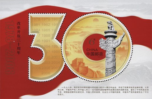 《改革開放三十周年》紀(jì)念郵票小型張