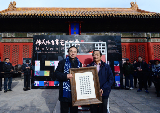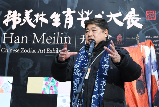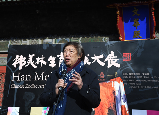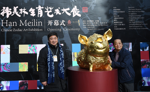 1月5日,“韓美林生肖藝術大展”開幕式及《己亥年》特種郵票首發儀式在故宮文華殿廣場舉行。該套郵票設計者、著名藝術家韓美林與中國郵政集團公司董事長、黨組書記劉愛力共同為郵票揭幕,兩位還與中國文聯主席、中國作協主席鐵凝,故宮博物院院長單霽翔,著名作家馮驥才,中國郵政集團公司黨組副書記李丕征等嘉賓一同為展覽揭幕。著名主持人白巖松主持了此次儀式。