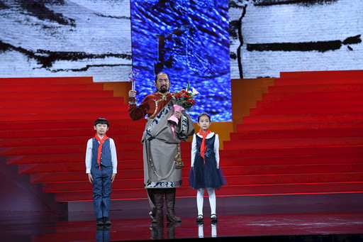 其美多吉舉起“2018年度感動中國人物”獎杯。記者 朱正義 攝