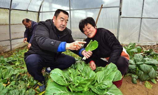 王龍民(左一)從小生長在農村,他在農作物生長方面算得上是一位“土專家”,菜農們遇到問題,總愛找他尋求解決方法。