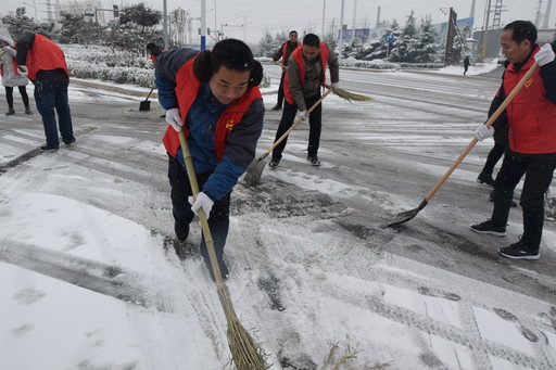 2月15日一早,河南省輝縣市郵政分公司組織黨員志愿者冒著風雪開展義務掃雪活動。活動中,大家干得熱火朝天,沒有一個人喊冷喊累。經過幾小時的奮戰,原本被雪覆蓋的街道變得干凈整潔,方便了市民和車輛出行。 □許紅霞  攝影報道