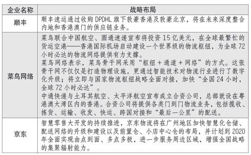 特別是今年2月18日《粵港澳大灣區發展規劃綱要》發布,里面共計17處提及物流、冷鏈產業發展,給快遞物流行業帶來了新的發展機遇,因此,各家企業也從近期開始加快布局粵港澳大灣區的跨境電商市場。