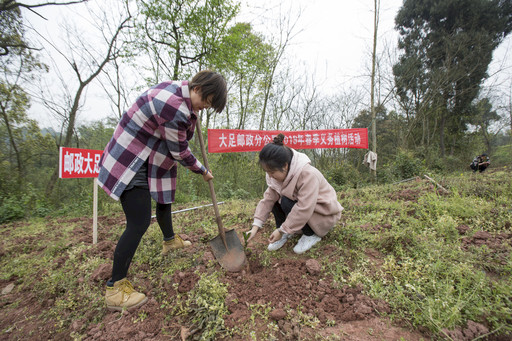 3月19日,重慶市大足區郵政分公司黨員與大足區檢察院等單位員工來到石馬鎮參加植樹活動。傳遞樹苗、揮鍬鏟土、培實新土,大家分工協作,現場一片繁忙,最終,近100株柚子樹在石馬鎮安家落戶。□唐曉勇  張玲燕  攝影報道