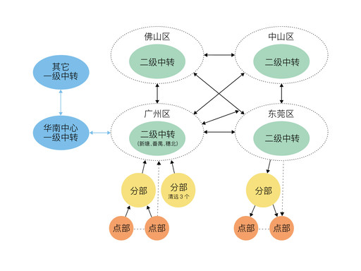 順豐、通達(dá)系基本是網(wǎng)狀網(wǎng),在省內(nèi)有多個(gè)分撥中心,分撥中心之間點(diǎn)對點(diǎn)直達(dá),且在處理中心主要采用“散件+集包”的方式,郵件集中到達(dá)、集中交換,在處理中心時(shí)間更短;而郵政主要是采取點(diǎn)對集散的方式,所有郵件在一個(gè)中心交換,導(dǎo)致部分地市互寄的郵件銜接時(shí)間較短或不能趕發(fā)有效頻次,需在處理中心停留到下一個(gè)頻次才能發(fā)運(yùn),導(dǎo)致郵件在處理中心時(shí)間過長。“因此,為了進(jìn)一步縮短時(shí)限,郵政在網(wǎng)絡(luò)布局時(shí)就應(yīng)逐步將單點(diǎn)集散網(wǎng)升級到多中心網(wǎng)狀網(wǎng),充分發(fā)揮中山、東莞、深圳等節(jié)點(diǎn)功能,形成區(qū)域網(wǎng),各區(qū)域、各中心直接夠量直達(dá);同時(shí),打破行政區(qū)域,以時(shí)限、效益優(yōu)先為原則,靈活組網(wǎng)。”趙洪濤告訴記者。