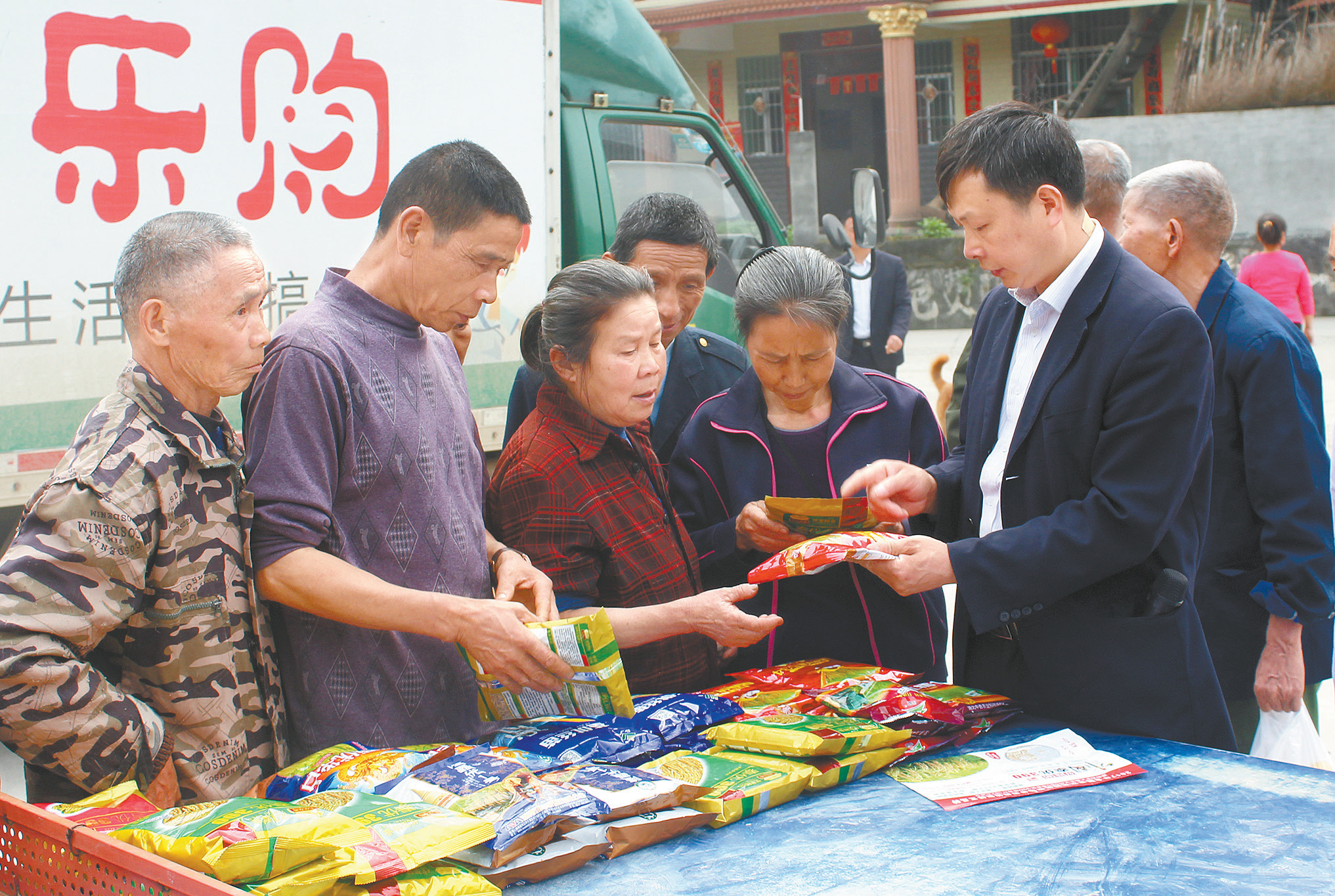 春耕忙,送科技下鄉(xiāng)忙。召開村級(jí)產(chǎn)說會(huì)、“服務(wù)三農(nóng)”主題訂貨會(huì),聯(lián)合農(nóng)資廠家為農(nóng)民開展無人機(jī)噴灑農(nóng)藥等,湖南省郵政分公司送科技下鄉(xiāng)活動(dòng)正在全省火熱開展中。至目前,全省郵政農(nóng)藥銷售預(yù)計(jì)將超過3萬桶,通過產(chǎn)說會(huì)預(yù)訂復(fù)合肥已超過4000噸,其中,高效肥占比超過80%。圖為4月4日,會(huì)同縣郵政分公司工作人員在金子巖鄉(xiāng)白市村為村民介紹農(nóng)資?! 鯒罘紪| 攝影報(bào)道