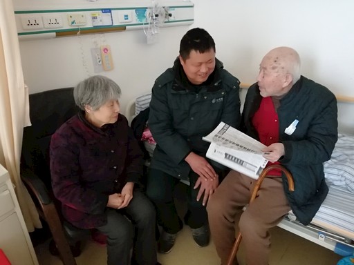 湖北省十堰市郵政分公司深入開展“比服務(wù)比質(zhì)量比貢獻(xiàn),爭(zhēng)創(chuàng)十星投遞員”活動(dòng),充分調(diào)動(dòng)投遞員爭(zhēng)先創(chuàng)優(yōu)的積極性和主動(dòng)性,使投遞服務(wù)質(zhì)量大幅提升。圖為三堰投遞站投遞員鄧大亮(中)為住院用戶送去當(dāng)日?qǐng)?bào)紙。□王龍鳳 攝影報(bào)道