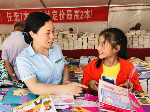 4月19日,在世界讀書日即將來臨之際,云南省紅河哈尼族彝族自治州建水縣郵政分公司聯合縣文明辦等單位舉辦的“全民閱讀 書香建水”大型圖書活動啟動。活動濃郁的書香氛圍受到市民的歡迎,為建水縣精神文明建設貢獻一份力。圖為建水縣朝陽北路營業所營業員為兒童講解圖書內容。□趙祝甜  攝影報道