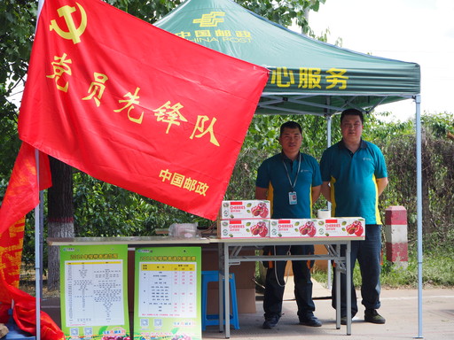 5月中旬,西安市郵政分公司組成黨員先鋒隊,幫助村民采摘、封裝、寄遞櫻桃。此外,為讓村民獲得更多實惠,西安市分公司在“郵樂網”“極速鮮”等線上銷售平臺為村民宣傳,讓陜西的櫻桃多條渠道走出去。“郵政來了,黨旗映紅了整個‘櫻桃谷’。”村民們這樣說道。 □袁淑美 攝影報道