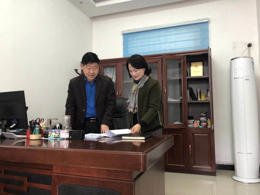 王媛媛(右)在利辛縣退伍軍人保障局洽談業務。