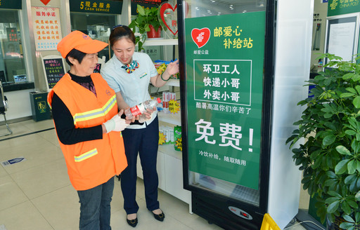 奔牛支局內(nèi)設(shè)有“郵愛(ài)心補(bǔ)給站”,免費(fèi)為戶外工作者提供飲用水等解暑用品,用心擦亮郵政品牌。