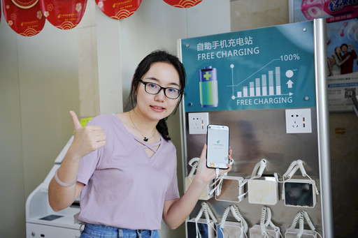 五四廣場所免費為客戶提供自助手機充電站,貼心服務獲“點贊”。