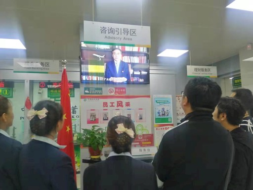 陜西省銅川市新街郵政營業所員工和客戶一起觀看世界郵政日報道。王建強 攝