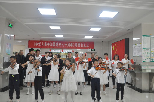 舉國(guó)歡慶之際,山西省晉城市郵政分公司隆重舉行《中華人民共和國(guó)成立七十周年》紀(jì)念郵票首發(fā)活動(dòng)。10月1日上午,百余名集郵愛好者早早來到澤州路營(yíng)業(yè)廳前自覺排隊(duì),翹首期盼。8時(shí),首發(fā)活動(dòng)在晉城市分公司合唱隊(duì)慷慨激昂的《歌唱祖國(guó)》歌聲中開啟,兩位名為“國(guó)慶”的集郵愛好者被邀請(qǐng)為郵票揭幕。現(xiàn)場(chǎng)還設(shè)立了臨時(shí)郵局,工作人員身著工裝,黨員佩戴黨徽,規(guī)范操作,有序引導(dǎo)。