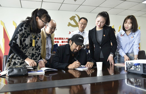 主題黨日活動尾聲,四川省分公司辦公室黨支部黨員拿出《雪線信使——時代楷模其美多吉》,請其美多吉簽名留念。