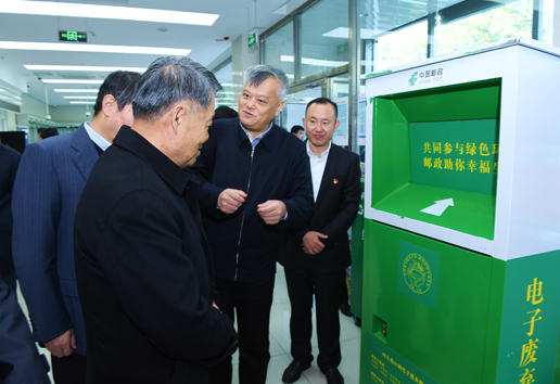 走進百萬莊支局營業(yè)廳,楊傳堂一行首先觀看了中國郵政綠色行動宣傳片。中國郵政于2018年率先啟動了綠色行動,系統(tǒng)部署綠色包裝、綠色運輸和綠色金融三大工程,下發(fā)了綠色行動三年規(guī)劃,全力以赴將綠色行動推向深入,致力于治理企業(yè)包裝污染和運輸污染、致力于支持全社會污染防治工作。李丕征還介紹了中國郵政成立綠色包裝創(chuàng)新實驗室、加強綠色包裝技術(shù)創(chuàng)新研發(fā)等情況,楊傳堂對此給予肯定。