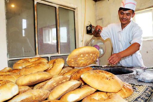 走進杜來提鄉(xiāng)別斯鐵列克村村民賽力克波力·努拉什的烤馕店,剛出馕坑的烤馕齊整整的排列在案板上,香味兒迎面撲來。
