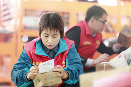 “雙11”期間,江蘇省金湖縣郵政分公司機關黨員自愿來到生產一線,馳援旺季生產。 □吉爾云 攝影報道