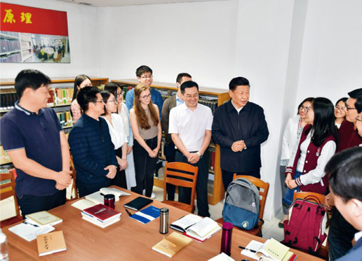 2018年5月2日,中共中央總書記、國家主席、中央軍委主席習(xí)近平來到北京大學(xué)考察。這是習(xí)近平在北京大學(xué)馬克思主義學(xué)院,與正在就“解讀新時代”進行座談交流的中外學(xué)生親切交談。 新華社記者 李濤/攝