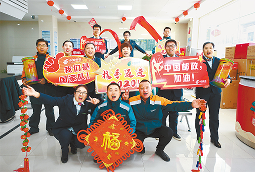 2020年是全面建成小康社會(huì)的決勝之年,對(duì)于剛剛改制的中國(guó)郵政來(lái)說(shuō),又將是激動(dòng)人心的一年。站在新的時(shí)間節(jié)點(diǎn),一線員工正以全新面貌投入到推進(jìn)企業(yè)高質(zhì)量發(fā)展之中。圖為江蘇省徐州市銅山區(qū)大黃山郵政支局員工喜迎新年。 □劉立明 攝影報(bào)道