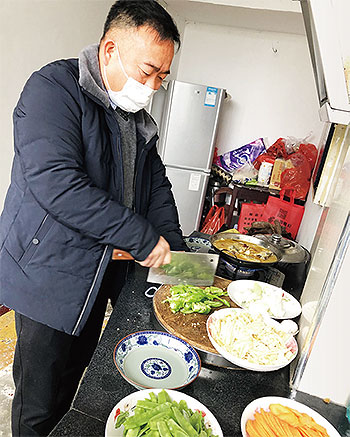 1月27日一大早,阮文學來到支局小食堂,和同事們簡單分工。有的去菜園子摘菜,有的從冰箱里拿出了年前備好的魚和肉,大家一起洗、切、炒、燉……11:00,熱騰騰的飯菜終于做好了。大家一起用保溫桶打包、備好碗筷,并將打好包的飯菜搬上阮文學的私家車,阮文學和王義勝一起開著車趕往高速路口的值守點。