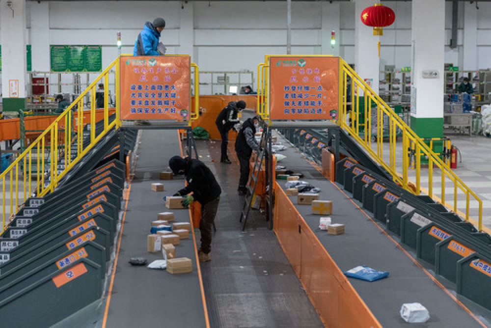 記者在現場看到,數名戴著口罩的工作人員正在郵件分揀輔助設備上緊張工作,傳送帶上的郵件包裹經辨認后會被放置于不同目的地的小隔欄中,央珍的就業材料也將在此被分揀后運送到目的地。
