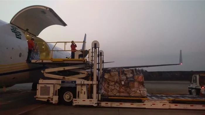 13時,航班計劃獲得民航局批準,“廣州—宜昌”專機運輸防疫醫療物資的空中快速通道開啟。與此同時,郵航廣州辦事處已按任務通知,先行展開物資交接工作;為完成此次任務,郵航緊急調用一架737-800飛機于15時05分從北京首都機場起飛,于18時08分飛抵廣州白云機場。18時27分,物資完成在郵航廣州辦事處的集裝作業后開始進行裝機作業,所運物資為防護服、霧化器、氧氣霧化機及赴鄂支援醫護人員行李等,物資凈重13.5噸。