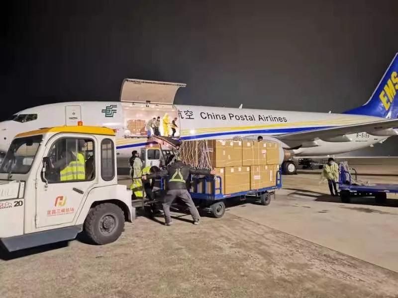 2月12日晚,中國郵政航空公司CF9122廣州至宜昌航班裝載著廣東省赴湖北省醫療隊人員行李和防疫醫療物資,于19時30分從廣州白云機場起飛,經過1小時20分鐘的飛行,于20時51分成功降落湖北宜昌三峽機場。這是中國郵政防疫物資空中運輸綠色通道開啟以來,郵政航空累計執行的第14班運輸專機,宜昌也成為繼武漢后郵航第二個防疫物資通航送達地。