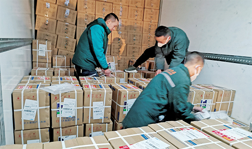 四川郵政員工趕發防疫物資。 □周旭 攝影報道