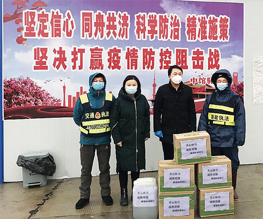 2月17日,麻城市支行黨總支書記、行長王繼東帶隊為當地南湖辦事處牌樓社區疫情防控工作隊送去10袋大米、5壺油和500個口罩等抗疫物資,為掛點扶貧村疫情防控工作送去抗“疫”動力。