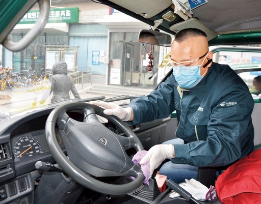 “開水打濕,倒上酒精,先把手再方向盤……”2月25日9點(diǎn),汪洋一邊默念一邊給郵車消毒,準(zhǔn)備出班投遞。旁邊,西外大街支局局長王磊目不轉(zhuǎn)睛地看著,生怕汪洋漏掉哪個步驟。見汪洋準(zhǔn)備完畢,王磊走過去遞上一張紙巾和一瓶酒精說:“汪師傅,您把紙巾墊在口罩里,護(hù)目鏡上就不會有哈氣了。這瓶酒精您揣兜里,用完了再和我說?!?/p>