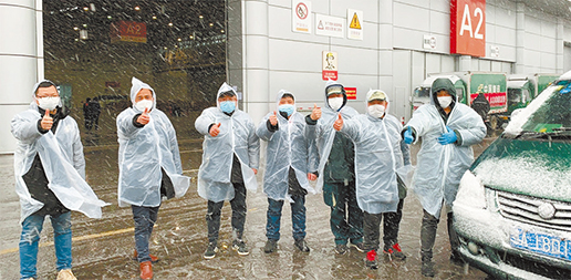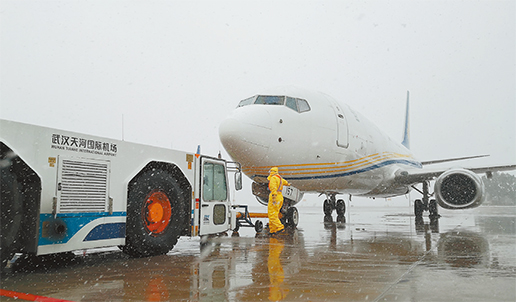 郵航直飛航班滿載防疫物資頂風(fēng)冒雪抵達武漢天河機場。 楊衛(wèi)東 提供