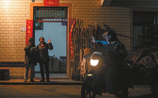 晚上10:30,家住重慶市巴南區(qū)木洞鎮(zhèn)的張玉寧同學(xué)收到教材后,開心地與爸爸一道將投遞員周繼勝送出家門。朱亞坤 攝