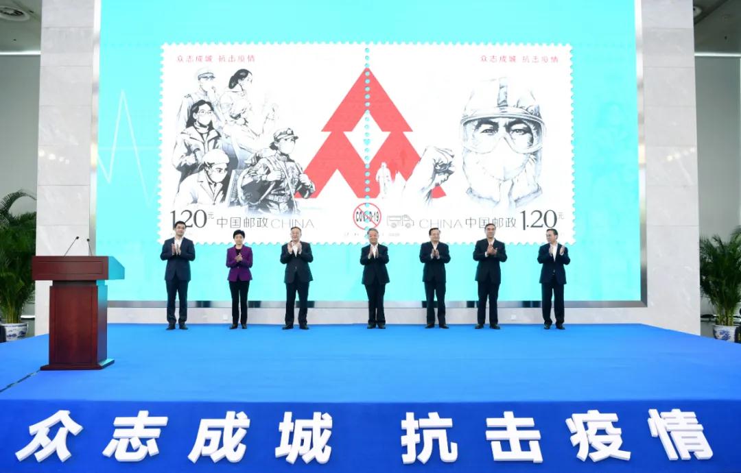 5月11日,國家郵政局和中國郵政集團(tuán)有限公司共同舉辦的《眾志成城 抗擊疫情》特別發(fā)行郵票首發(fā)暨捐贈儀式在京舉行。該套郵票1套2枚,充分展示在以習(xí)近平同志為核心的黨中央堅強領(lǐng)導(dǎo)下全國人民眾志成城抗擊疫情的堅定決心,彰顯中國共產(chǎn)黨領(lǐng)導(dǎo)和中國特色社會主義制度的顯著優(yōu)勢,宣傳疫情防控中展現(xiàn)出的中國力量、中國精神、中國效率,宣傳社會各界為抗擊疫情作出的巨大貢獻(xiàn)。