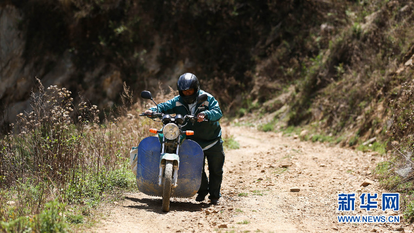 休息了兩次,桑南才終于把摩托車推上了陡坡,摘下頭盔,黝黑的臉上掛滿汗水。“路上那么危險,害不害怕?”休息的間隙,記者和桑南才聊了起來,“還是害怕的,特別是下坡的時候,如果剎不住,滾下去可能就回不來了。”