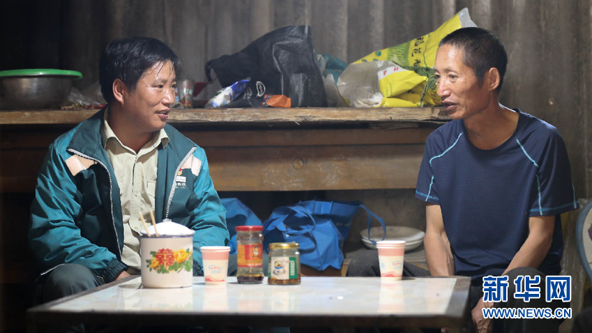 送件途中,桑南才在老鄉家休息,并了解老鄉的生產生活情況(5月11日攝)。新華網 趙普凡 攝