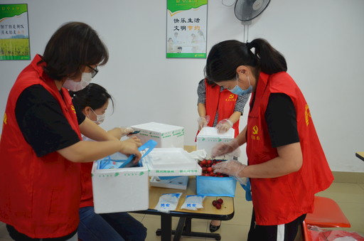 5月中旬,四川茂縣的甜櫻桃上市。浙江省玉環市郵政分公司積極參與當地市政府開展的消費扶貧助力對口地區脫貧攻堅活動,為茂縣甜櫻桃拓銷路、暢渠道。該分公司采用冷鏈物流的運輸方式,將茂縣甜櫻桃運到玉環市,再通過同城配送將甜櫻桃送到客戶手中。5月下旬至6月初,玉環市分公司已配送4批、近6600公斤茂縣甜櫻桃,助力拓寬茂縣優質農產品銷售渠道。圖為玉環市分公司黨員志愿者在配送前檢測櫻桃品質?! 跞~瑋  攝影報道