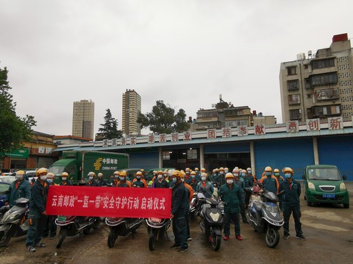 為貫徹落實(shí)全國“一盔一帶”安全守護(hù)行動(dòng)部署要求,全力促進(jìn)快遞員佩戴安全頭盔行動(dòng),5月27日,云南省交警總隊(duì)車管處、省寄遞事業(yè)部速遞業(yè)務(wù)責(zé)任中心、昆明市郵政分公司共同召開云南警郵聯(lián)動(dòng)“一盔一帶”啟動(dòng)大會(huì),會(huì)上,省交警總隊(duì)車管處相關(guān)人員為快遞騎手普及“一盔一帶”相關(guān)知識(shí),開展“一盔一帶”知識(shí)有獎(jiǎng)?chuàng)尨穑F(xiàn)場(chǎng)為快遞員發(fā)放頭盔。□婁華 攝影報(bào)道