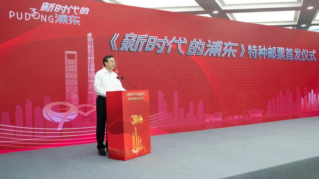 郵票作為國家名片,在講述中國故事、傳播中國聲音、展現中國精神、體現中國力量等方面,具有舉足輕重的作用。一直以來,中國郵政堅持用發行郵票的形式來服務國家重大戰略部署,宣傳紀念重大歷史事件。此次發行的《新時代的浦東》特種郵票,是在1996年發行《上海浦東》特種郵票之后,再次通過郵票這種獨特的文化載體,宣傳紀念浦東開發開放取得的顯著成就。《新時代的浦東》特種郵票打破了常規聯票方式,采用大畫幅,以簡化的標志性建筑為基礎元素,配上象征性的圖形和符號,色調現代時尚,圖案簡潔莊重,充分展示了30年來浦東改革發展取得的偉大成就,充分展示了浦東敢闖敢試、先行先試的旗幟形象,充分展示了浦東面向未來的勃勃生機和活力。我們堅信,在習近平新時代中國特色社會主義思想的指導下,在上海市委、市政府的正確領導下,在全體上海人民的共同努力下,浦東的奇跡必將更加矚目,上海的史詩必將更加輝煌,中國的明天必將更加美好。
