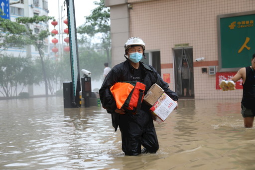 待所有郵件全部緊急轉運完畢時,洪水隨即淹沒了整個生產場地,大院水淹最深處達到1.2米,此時,所有參與郵件轉運的人員都長舒一口氣。通過緊急搶運,有超過5000件郵件被搶運至安全地帶,無一郵件受損,但是部分參與搶運員工的私家車輛卻來不及轉移被洪水浸泡,損失嚴重。